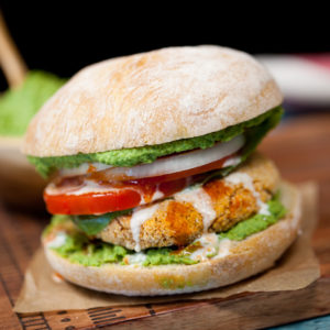 We topped these Sweet Potato Falafel Burgers with homemade Parsley Hummus! The flavors are reeeeeeeally nice and the colors are super pretty to boot! Plus if you make your own hummus, you’ll have even more leftover aquafaba to play with.