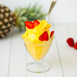 Recipe by Carrots and Flowers at https://www.carrotsandflowers.com/raw-vegan-pineapple-mango-sorbet/