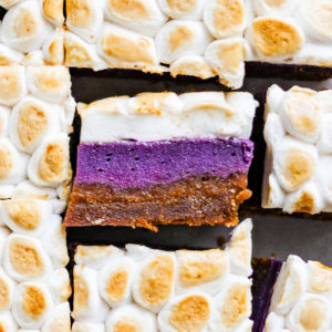 Save time in the kitchen with these INCREDIBLE vegan sweet potato bars. They are a side dish and dessert rolled into one! Use purple sweet potatoes if you can find them for an eye catching dish.