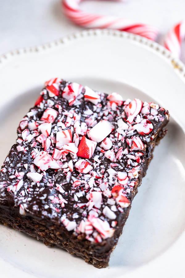 To make a traditional chocolate recipe with no peppermint, add 1 tbsp vanilla extract to the marshmallow mixture. Omit the peppermint from the fudge layer and swap the candy canes for rainbow sprinkles.