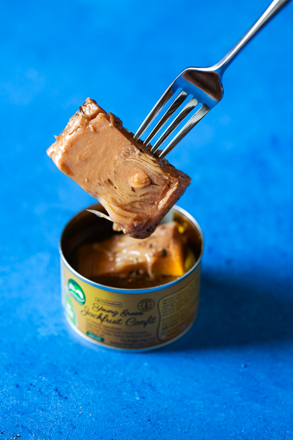 Drain the jackfruit confit. Slice the jackfruit into bite sized pieces. Coat each piece in cajun seasoning. Melt 1 tbsp butter In a saute pan over medium high heat. Cook the jackfruit for 1-2 minutes on each side.