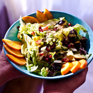 Recipe by Carrots and Flowers at https://www.carrotsandflowers.com/pomegranate-persimmon-salad/