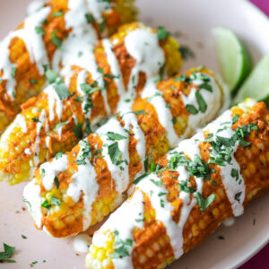 Mix the yogurt with 3 Tbsp coconut milk. Drizzle the elote with coconut sauce. Garnish with cilantro and a squeeze of lime. Serve and enjoy!
