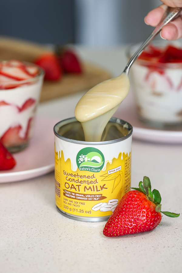 A 15-minute, no-bake dessert with layers of dairy-free sweet cream, jam-soaked ladyfingers, and fresh strawberries. Sweet, creamy, and perfect for summer!