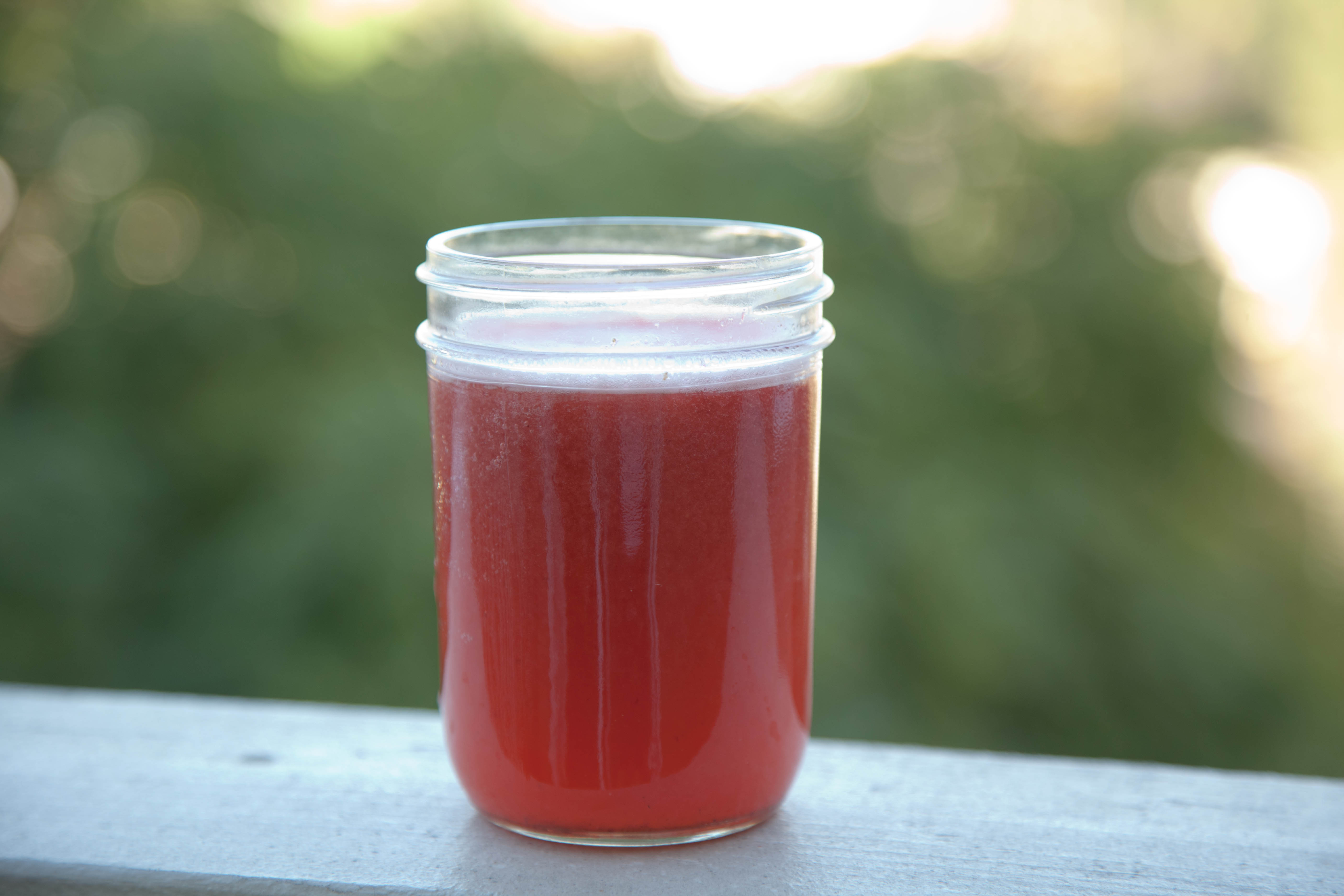 Use a funnel if you have one to pour the fruit mixture into the bottles. I use a janky little cup cause I don’t have a funnel. It’s messy!