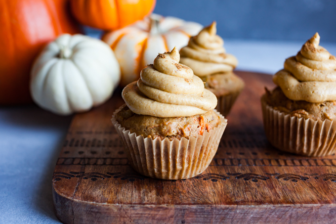 I’m absolutely in love with these cupcakes. Seriously, vegan carrot cupcakes have always been my favorite but the addition of crushed pineapple and the pumpkin cream cheese frosting take these babies to the next level!