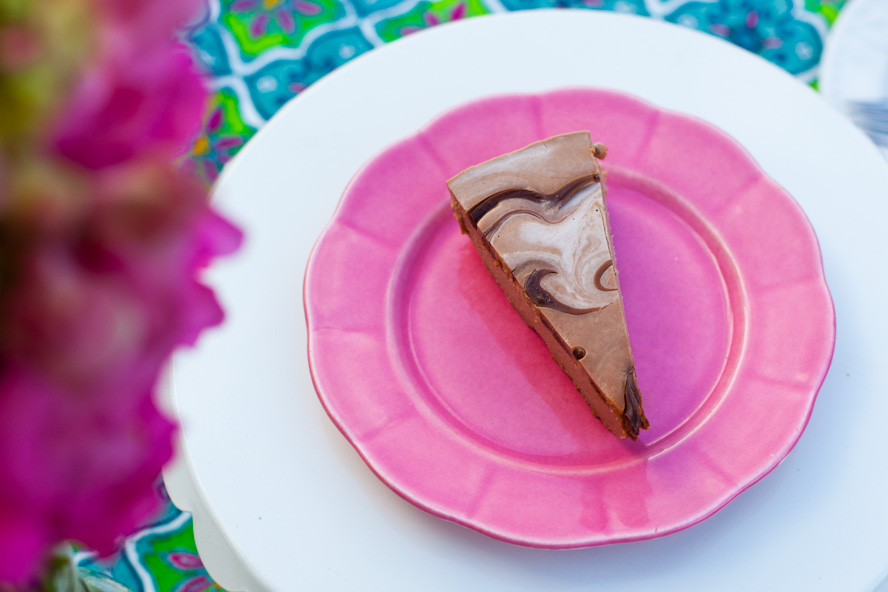 To make the chocolate swirls, I spooned small amounts of melted chocolate on the top then used a chopstick to feather it out into a swirly design. This was my first time attempting swirls with this No-Bake Vegan Chocolate Peanut Butter Pie and I think it turned out quite nicely! I’m looking forward to trying it again, once I bounce back from my peanut butter overdose. 😉