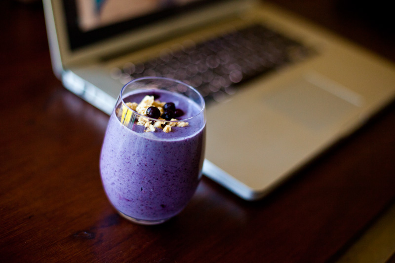 - Top with a few blueberries and 1 tbs granola. Then sit down and savor your smoothie with a big, fat smile on your face. You’re having dessert for breakfast and no one can stop you!!