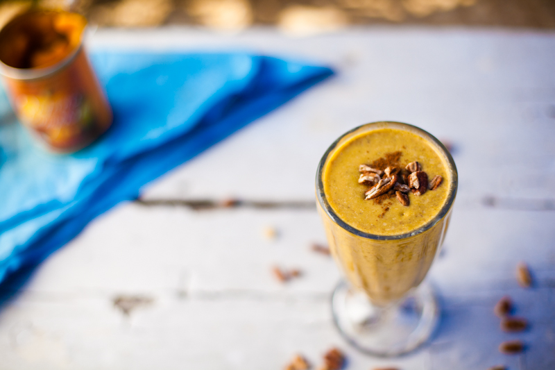 Blend all ingredients for 2 minutes. Sprinkle a dash of cinnamon and a few pecan pieces on top then enjoy your fancy ass smoothie.