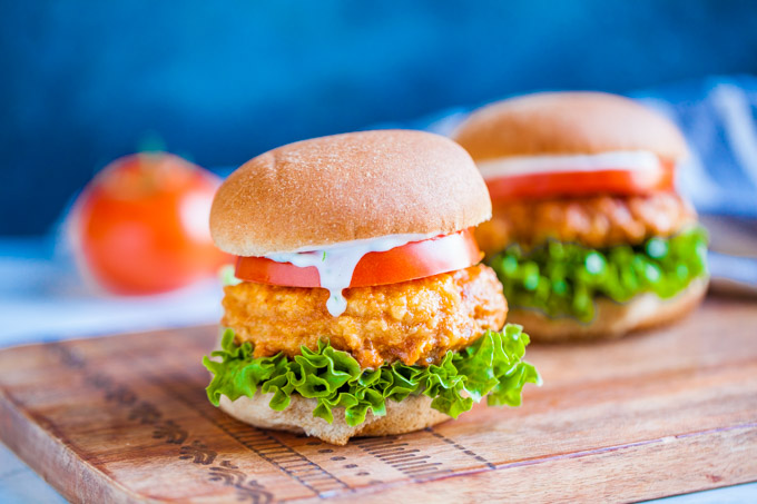 Buffalo chicken sandwiches are one of the most universally revered foods here in the States. Who can resist a giant, saucy spicy fried sandwich smothered in ranch dressing? Not me!