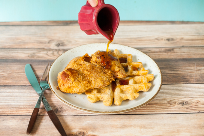 Crispy, Southern fried veggie meat on a sweet, fluffy Belgian waffle? What more can you ask for from a vegan brunch?
