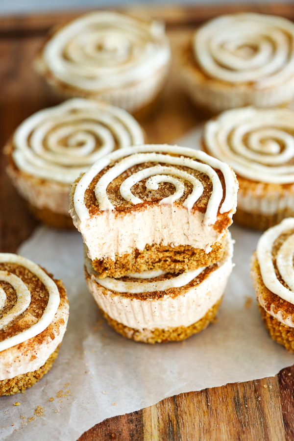 Add in a buttery graham cracker crust, a swirl of cinnamon-spiced icing, and a sprinkle of cinnamon sugar on top, and you’ve got a fall dessert that’s as pretty as it is delicious.