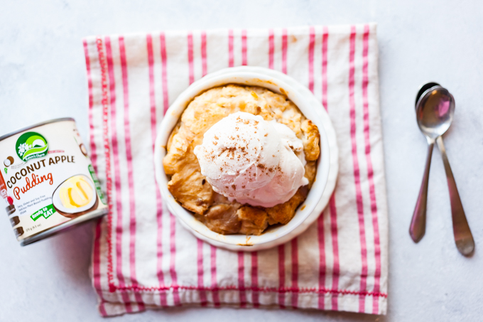 This coconut apple pudding is really versatile too! It can be enjoyed straight from the can or warm with whipped coconut cream!