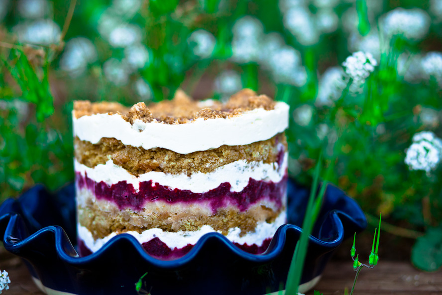 - Use the remaining scraps to fill in the bottom layer. Shove the pieces into the middle, and tamp it down a bit with the back of your hand. You may have a few bites left over to munch on! Slowly and evenly, sprinkle 1 tablespoon of Meyer lemon juice on top of the bottom layer. Spread 1/2 of the vegan lemon curd on the layer. Top with 1/3 of the raspberry jam. Add 1/3 of the lemon buttercream on top and spread it evenly. Add 1/3 of the cookie crumbs on top of the buttercream and gently push the crumbs into the buttercream with the back of your hand, being careful around the rim of the cake. It will be visible so you want it to look even and gorgeous!